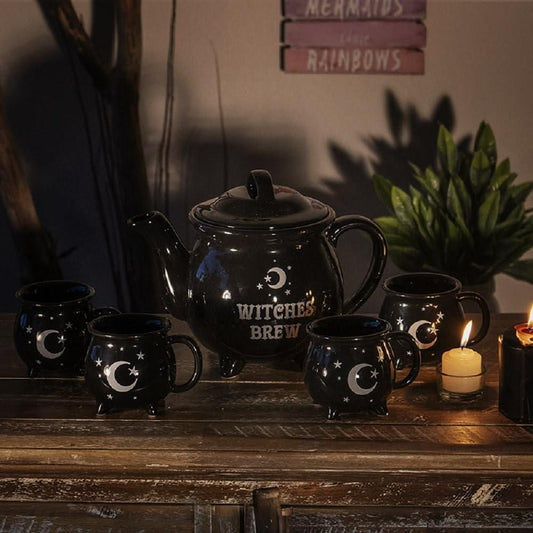 Witches Brew Black Ceramic Tea Pot with 4 Mugs