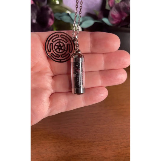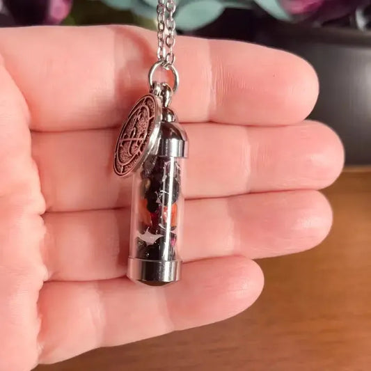 Lilith Spell Jar Amulet Necklace, Witchy Crystal Jewelry