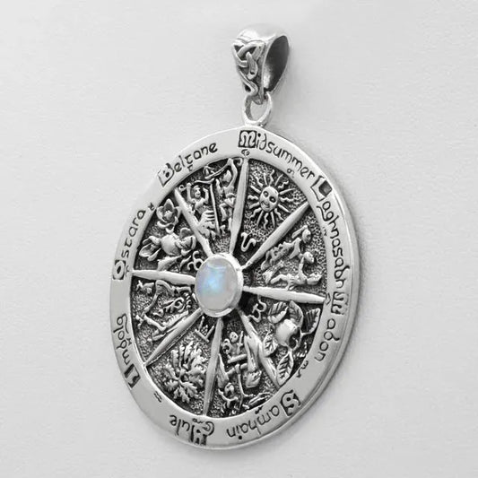 Dryad Design Wheel of the Year Pendant Moonstone 1.75" Sterling Silver