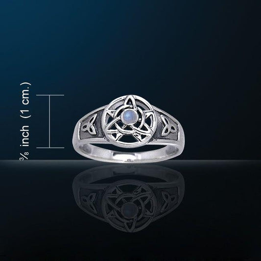 Druid Pentacle & Triquetra Knot Moonstone White Bronze Ring